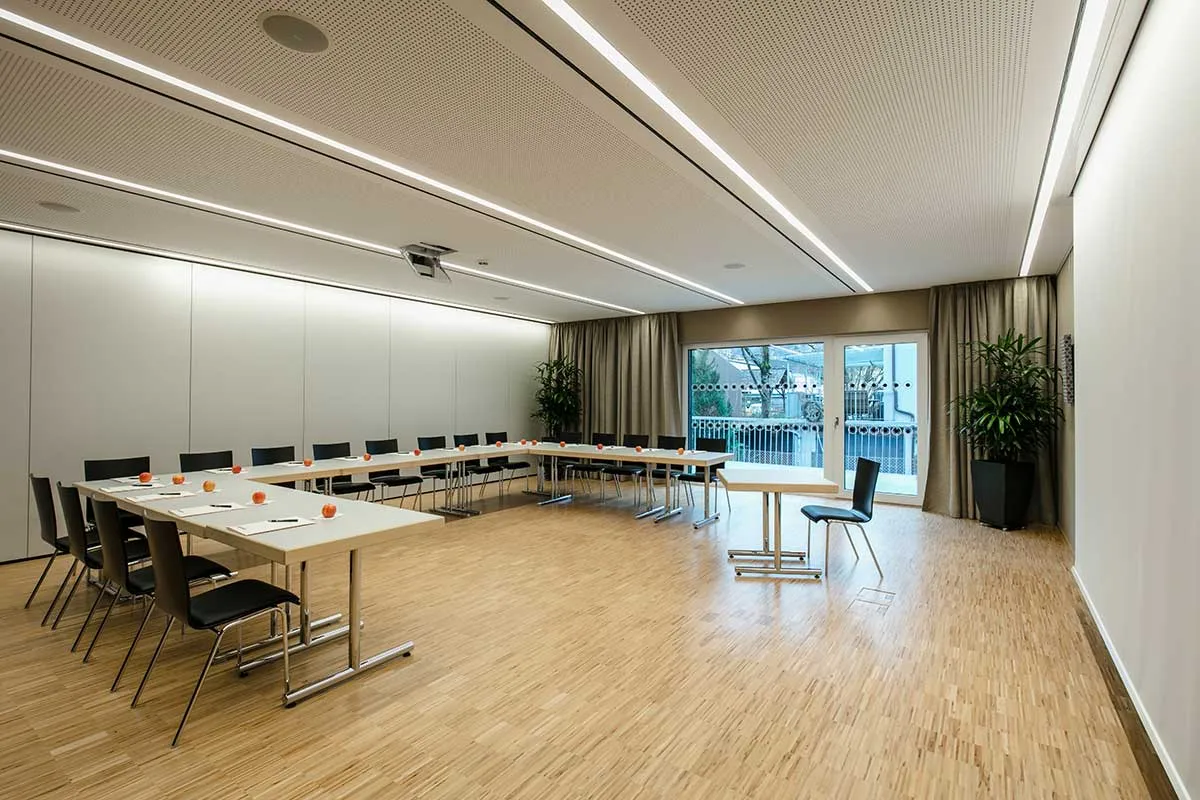 Ein Business-Event lebt vom Inhalt – aber ebenso vom richtigen Rahmen. Bei uns finden Sie die richtigen Räumlichkeiten, eine sehr gute technische Ausstattung und Leckeres für den Gaumen. Fünf Seminarräume, von 55 bis 184 m2 bieten ausreichend Platz und sind nach Ihren Wünschen kombinierbar, so dass vom kleinen Meeting bis zur großen Tagung alles möglich ist. Und natürlich stehen wir Ihnen mit Rat und Tat bei der Organisation Ihrer Veranstaltung zur Seite.